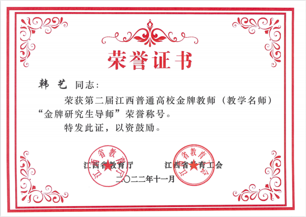 【南昌大學(xué)】我院韓藝教授榮獲江西省金牌研究生導(dǎo)師(教學(xué)名師)稱號